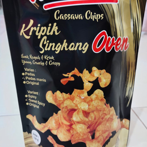 Keripik singkong oven varian pedas manis, lebih garing, kriuk, Krena melalu proses pemanggangan setelah digoreng, dibumbui Alamat : Jln Roni GG Tupperware no 67 kota raja talang Padang tanggamus 35377 |